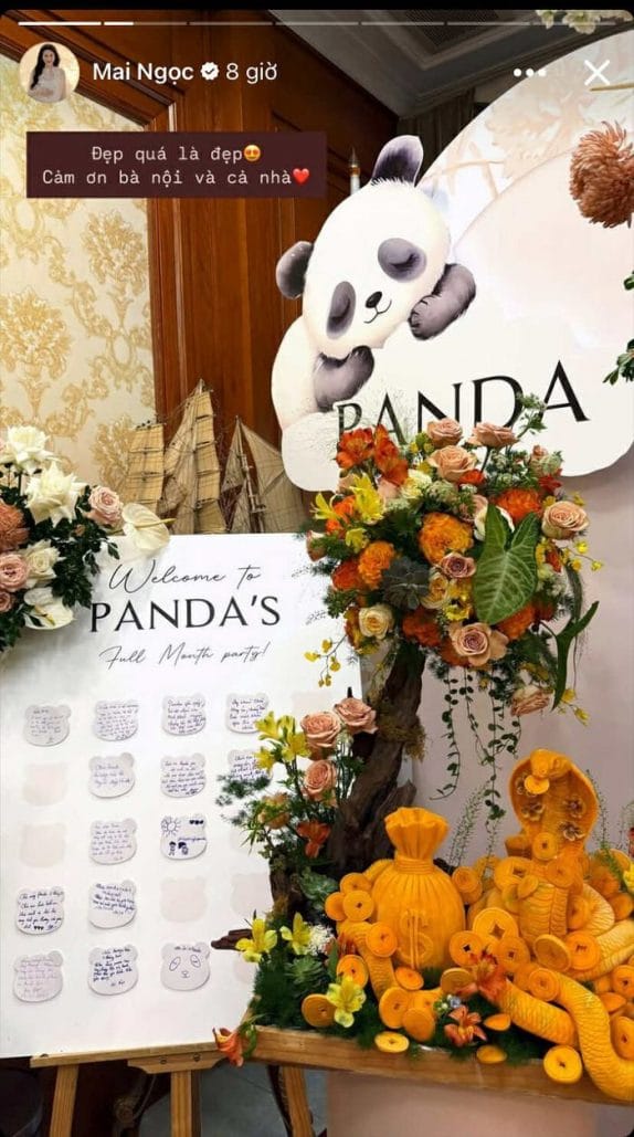 Hành trình làm mẹ của MC Mai Ngọc đang tràn ngập niềm vui khi cô vừa tổ chức tiệc đầy tháng cho con trai đầu lòng. Không gian ấm cúng, đầy tình cảm của buổi tiệc khiến ai cũng cảm nhận được hạnh phúc ngập tràn từ nữ MC. Đặc biệt, Mai Ngọc còn gửi lời cảm ơn chân thành đến mẹ chồng và gia đình vì đã chuẩn bị một buổi lễ ý nghĩa.