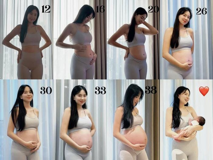 “10 tháng đáng nhớ. Cảm thấy may mắn khi có một thai kỳ nhẹ nhõm, xinh xắn. Cả thai kỳ lên 8 kg và 20 ngày sau sinh về lại như ban đầu. Chúc các mẹ bầu, mẹ bỉm luôn thật nhiều sức khoẻ, đồng hành cùng các con trong mọi chặng đường, ngập tràn yêu thương.”