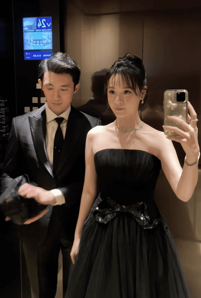 Midu xuất hiện trong bộ váy dạ hội đen quyến rũ, kết hợp cùng trang sức kim cương lấp lánh. Trong khi đó, ông xã Minh Đạt chọn bộ suit đen lịch lãm, tạo nên hình ảnh đồng điệu đầy tinh tế. Cả hai như một bức tranh sống động của tình yêu và sự sang trọng.