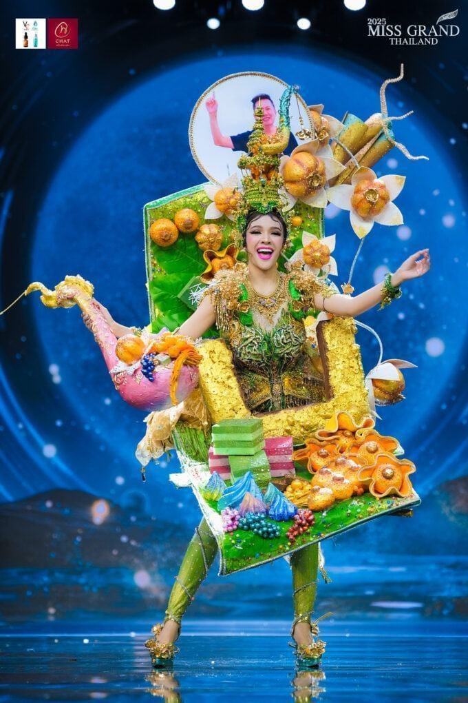 Đặc biệt nhất là thí sinh dám mang hình ảnh ông Nawat – cựu giám đốc Miss Grand International – lên trang phục dự thi. Đây là cách “lấy lòng” ban giám khảo táo bạo nhất từ trước đến nay, hay chỉ đơn giản là một ý tưởng thiết kế… có 1-0-2?