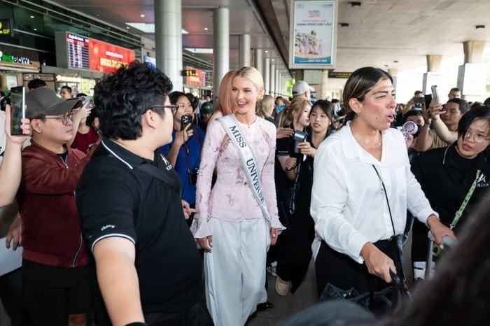 Chiều 9/4, sân bay Tân Sơn Nhất chào đón một vị khách đặc biệt – đương kim Miss Universe 2024 Victoria Kjær Theilvig. Cô xuất hiện trong bộ áo bà ba cách tân màu hồng phấn, kết hợp giữa nét truyền thống và hiện đại, khiến người hâm mộ không khỏi trầm trồ.