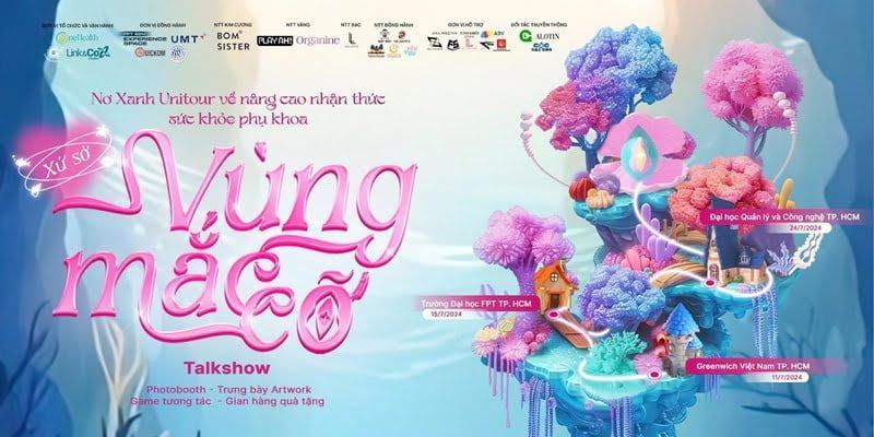 Mỗi điểm đến của Unitour Xứ Sở Vùng Mắc Cỡ hứa hẹn mang đến không gian thú vị với nhiều hoạt động vừa giải trí nhưng không kém phần bổ ích, thiết thực cho các bạn sinh viên. Tại đây, thế giới phụ khoa tưởng chừng như vô cùng nhạy cảm sẽ được bình thường hóa thông qua nghệ thuật, âm thanh & hội thoại. Đặc biệt hơn hết, điểm nhấn của Unitour Xứ Sở Vùng Mắc Cỡ chính Talkshow “Chuyện Vùng Mắc Cỡ” – Không gian đối thoại cởi mở, gần gũi mang đến cơ hội giao lưu, hỏi đáp & chia sẻ góc nhìn mới mẻ, tích cực về chủ đề sức khỏe phụ khoa với sự đồng hành của Host Nhi Võ – Diễn viên Hài độc thoại tại Saigon Tếu, Diễn giả – Bác sĩ CKII Bùi Thanh Vân & Tiến sĩ, Bác sĩ Sản phụ khoa Ngô Thị Yên.