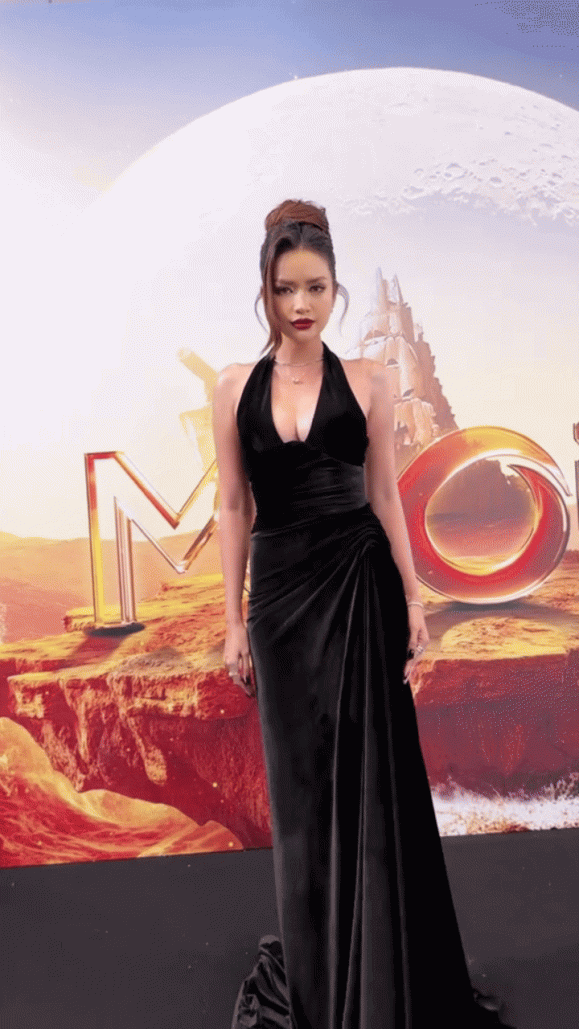 Không chỉ dừng lại ở phát ngôn, Ngọc Châu còn khiến khán giả “mê mẩn” với visual xuất thần. Diện đầm nhung đen cắt xẻ sâu chữ V, cô khoe trọn đường cong quyến rũ mà vẫn giữ được nét sang trọng, đẳng cấp. Makeup glowy cùng kiểu tóc búi cao rẽ mái càng tôn lên vẻ gợi cảm của nàng hậu.