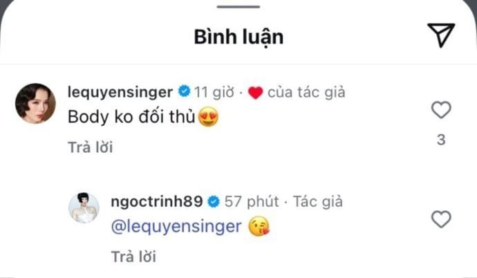 Bộ ảnh không chỉ thu hút sự chú ý của công chúng mà còn nhận được lời khen ngợi từ ca sĩ Lệ Quyên. Nữ ca sĩ đã không ngần ngại nhận xét rằng Ngọc Trinh có “body không đối thủ”. Trước lời khen này, Ngọc Trinh đã để lại biểu tượng trái tim đầy tình cảm.