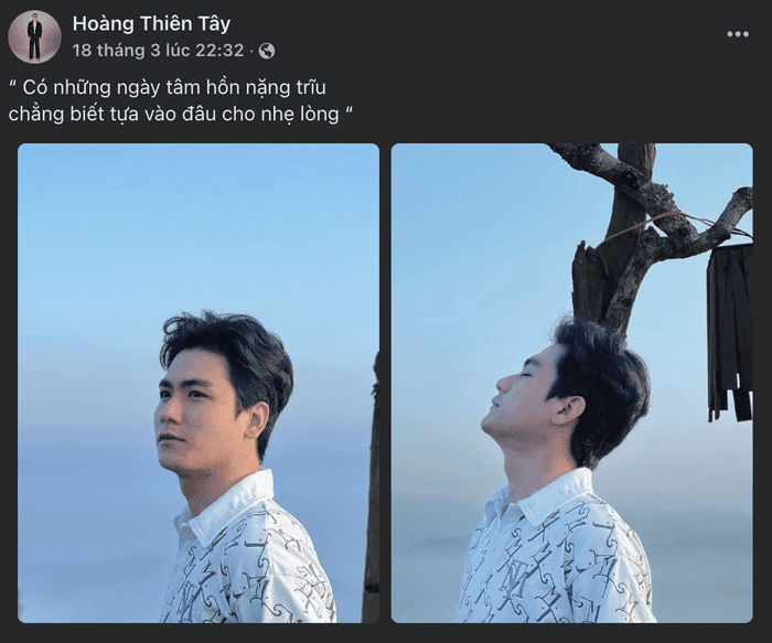 Không chỉ dừng lại ở việc xóa ảnh, Thiên Tây còn khiến cộng đồng mạng xôn xao với dòng trạng thái đầy tâm trạng: “Có những ngày tâm hồn nặng trĩu, chẳng biết tựa vào đâu”. Câu nói như một lời gợi ý về những sóng gió trong mối quan hệ của họ.