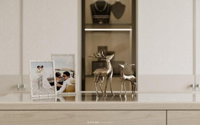 Điểm nhấn đặc biệt nhất? Những bức ảnh tình cảm của cặp đôi được treo khắp nơi như lời nhắc nhở về hành trình yêu thương của họ. Từ những ngày đầu Phương Nga tham gia Hoa hậu Việt Nam 2018 đến đám cưới cổ tích năm 2022, tất cả đều được lưu giữ tại đây.