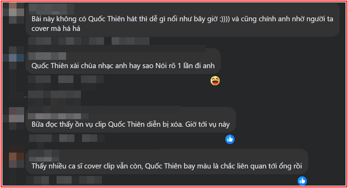 Cộng đồng mạng nhanh chóng liên hệ vụ việc với ca sĩ Quốc Thiên, người từng cover bài hát và góp phần lan tỏa nó. Nhiều người nghi ngờ anh đã biểu diễn ca khúc sau thời hạn cấp phép. Đáng chú ý, video cover của Quốc Thiên trên YouTube đã biến mất, trong khi các bản khác vẫn tồn tại.