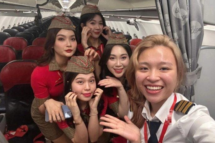 Hơn 2 năm bén duyên với nghề phi công, nữ cơ phó Lưu Phúc Thiên Bảo (SN 2001, ngụ tại TPHCM) đã có những trải nghiệm đáng nhớ. Cô chia sẻ: “Mỗi chuyến bay không chỉ là công việc mà còn là những khoảnh khắc xúc động, đặc biệt khi đưa hành khách về quê đón Tết Nguyên đán vào đúng thời khắc giao thừa.”