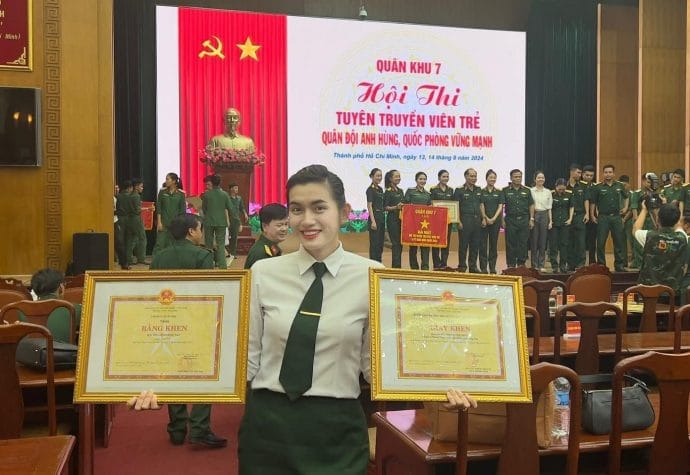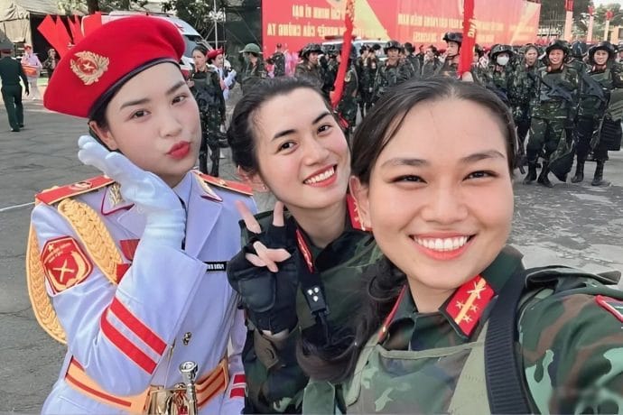 Giữa những buổi tập luyện diễu binh chuẩn bị cho Lễ kỷ niệm 50 năm Ngày thống nhất đất nước, một gương mặt nữ hạ sĩ đã khiến cộng đồng mạng xôn xao. Không chỉ sở hữu nhan sắc xinh đẹp, Bùi Thị Phương Ngọc (SN 2001) còn là một trong những khối trưởng của đội hình diễu binh Nữ chiến sĩ Biệt động Sài Gòn. Cô gái đến từ Đồng Nai này từng lọt top 15 Hoa hậu Đại dương Việt Nam 2023, nhưng quyết định gác lại ánh hào quang để nhập ngũ.