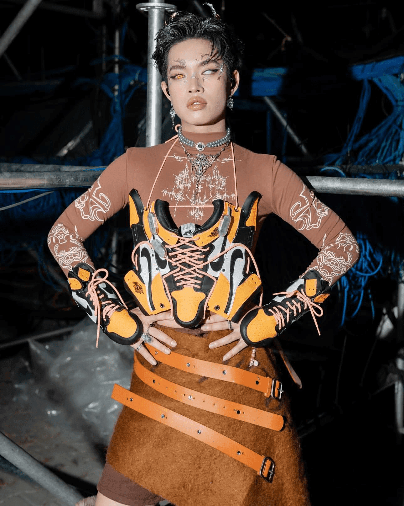 Pháp Kiều, tên thật Nguyễn Thiện Pháp, sinh năm 2001 tại Vĩnh Long, không chỉ là một rapper đầy triển vọng mà còn là hiện tượng thời trang với phong cách phi giới tính. Từ “Rap Việt 2023” đến “Anh trai say hi”, anh liên tục khiến khán giả bất ngờ bởi những trang phục đậm chất nghệ thuật, phá vỡ mọi ranh giới truyền thống.