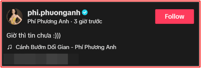 Mới đây nhất, nữ ca sĩ còn tăng thêm độ nóng khi đăng tải đoạn clip lên kênh TikTok cá nhân, sử dụng nhạc nền ca khúc Cánh bướm dối gian. Đồng thời, Phí Phương Anh còn kèm dòng trạng thái đầy ẩn ý: “Giờ thì tin chưa?”, khiến cộng đồng mạng xôn xao.