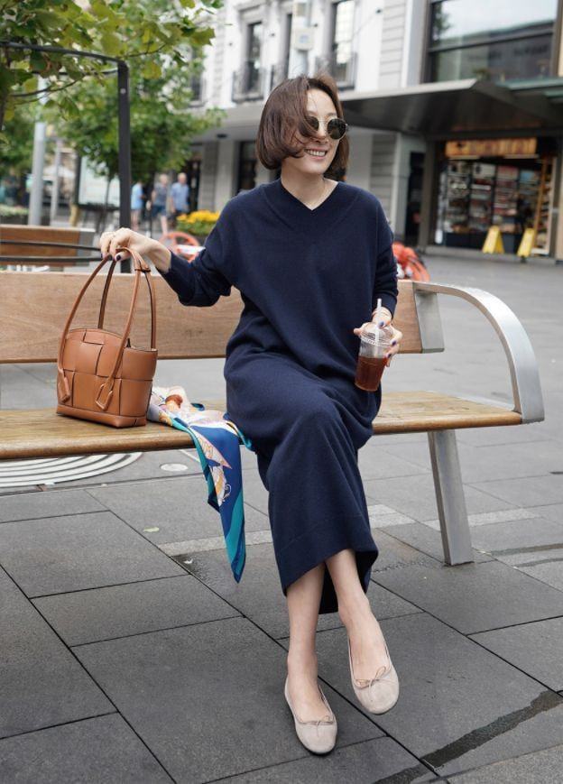 Nếu vòng eo không săn chắc, hãy chọn váy suông hoặc áo khoác dài. Họa tiết ngang hoặc xẻ ở eo cũng giúp tạo cảm giác thon gọn.