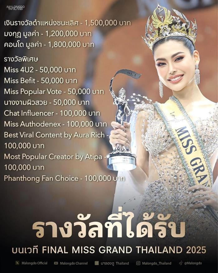 Sắp tới, tân hoa hậu sẽ đại diện Thái Lan tham dự Miss Grand International 2025 vào tháng 10, hứa hẹn mang về nhiều thành tích ấn tượng hơn nữa.