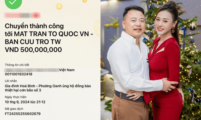Không chỉ dừng lại ở đó, Phương Oanh còn ghi điểm trong mắt công chúng bằng những hành động thiết thực. Hồi tháng 9/2024, khi cơn bão Yagi gây thiệt hại nặng nề, cô cùng chồng – Shark Bình đã quyên góp 500 triệu đồng. Cô còn trực tiếp về quê nhà Hà Nam để phát nhu yếu phẩm cho người dân.