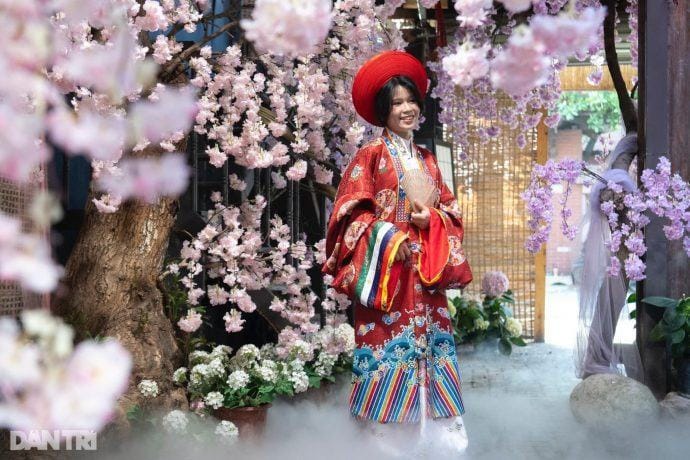 Không gian độc đáo này không chỉ thể hiện niềm tự hào dân tộc mà còn trở thành điểm check-in hấp dẫn. Đặc biệt, quán đã chuẩn bị 1.000 bộ trang phục miễn phí, bao gồm áo dài truyền thống, áo bà ba và nhiều phụ kiện đi kèm, giúp khách thoải mái tạo dáng và lưu giữ những khoảnh khắc ý nghĩa.