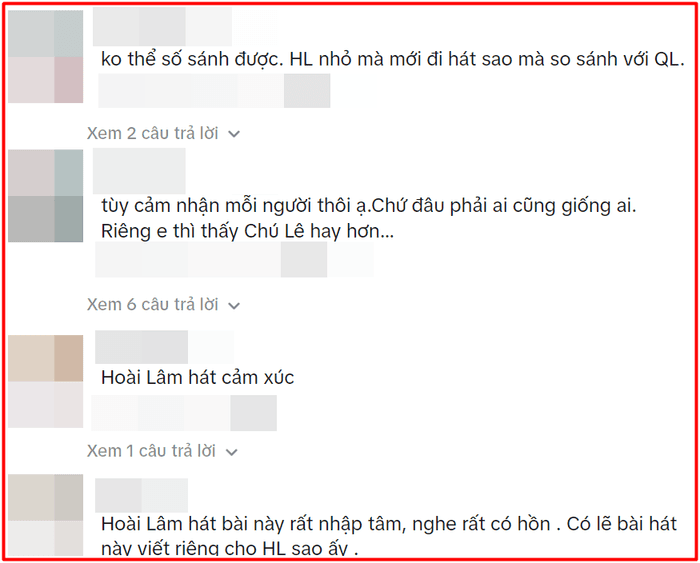 Dưới phần bình luận, cư dân mạng chia thành hai phe rõ rệt. Một bên hào hứng với phiên bản trẻ trung, tươi mới của Hoài Lâm, một bên say đắm với sự từng trải, sâu lắng từ Quang Lê. Mỗi phiên bản đều có nét cuốn hút riêng, phù hợp với từng gu thưởng thức âm nhạc.