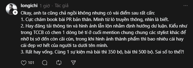 Khi trả lời phỏng vấn báo chí hay book bài báo để PR thì mình vui lòng nói rõ từng phần công việc ở chương trình Tv show cũng như concert của Chị Đẹp Đạp Gió Rẽ Sóng mà anh đảm nhận cũng như của các stylists khác.