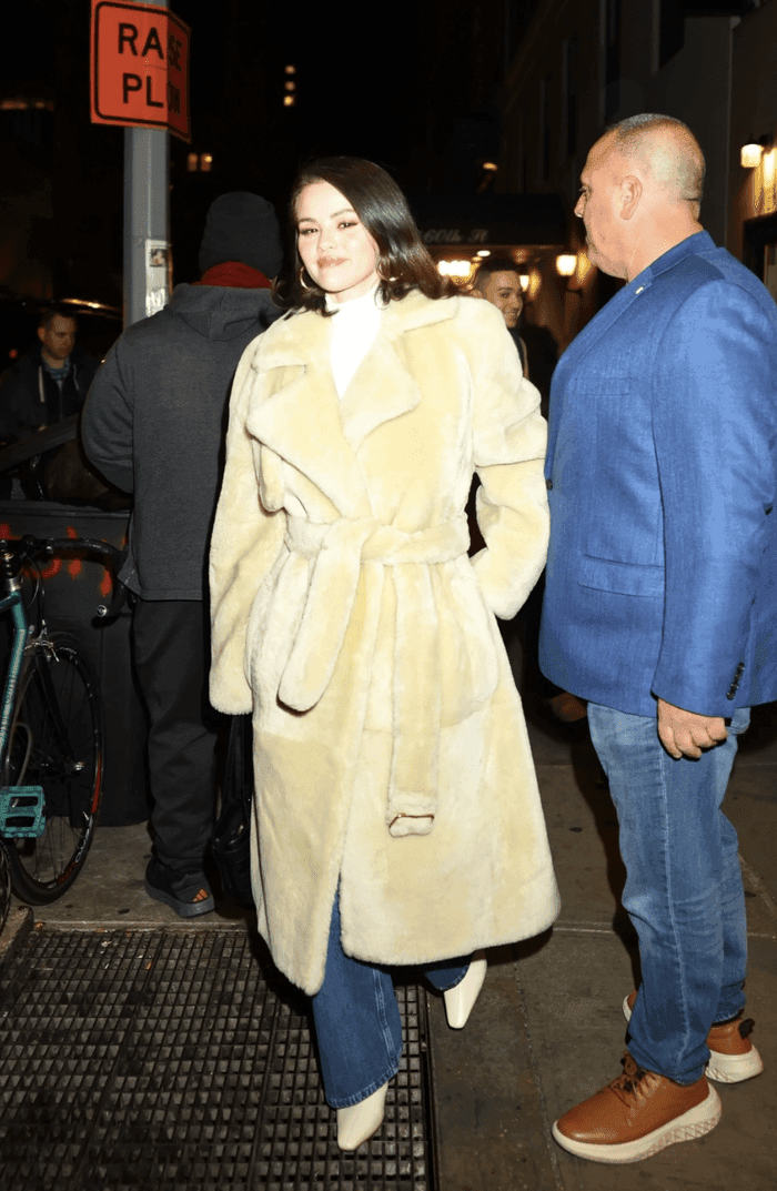 New York chưa bao giờ ngừng ngạc nhiên trước những bước đi táo bạo của Selena Gomez. Lần này, cô nàng khiến cả thành phố “đứng hình” khi xuất hiện với chiếc áo choàng tắm lông vũ màu vàng kem, kết hợp cùng áo cổ lọ, quần jean ống suông và giày boot bít mũi. Một phong cách vừa ấm áp, vừa gợi cảm, khiến ai cũng phải ngoái nhìn.