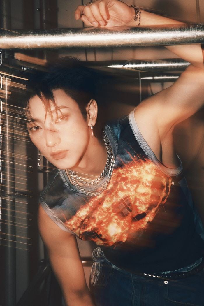 Cụ thể, Wonwoo và Yeonggwang (VANNER) đều xuất hiện với áo tank top xám đậm in họa tiết lửa, kết hợp cùng phụ kiện kim loại. Trang điểm “scars make-up” và bối cảnh ngập tràn ngọn lửa càng khiến cư dân mạng nghi ngờ tính nguyên bản.