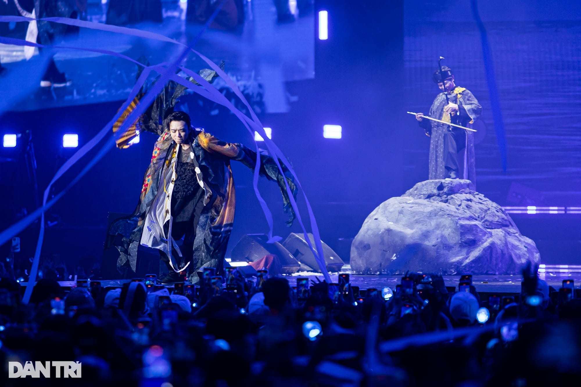 Điểm nhấn đáng nhớ nhất là màn song ca giữa SOOBIN và bố – NSND Huỳnh Tú. Hai cha con cùng hòa giọng trong ca khúc Mục hạ vô nhân, kết hợp giữa âm hưởng dân gian và phối khí hiện đại. Không chỉ hát, SOOBIN còn tự tay chơi đàn bầu – nhạc cụ truyền thống anh được bố dạy từ năm lên 3 tuổi.