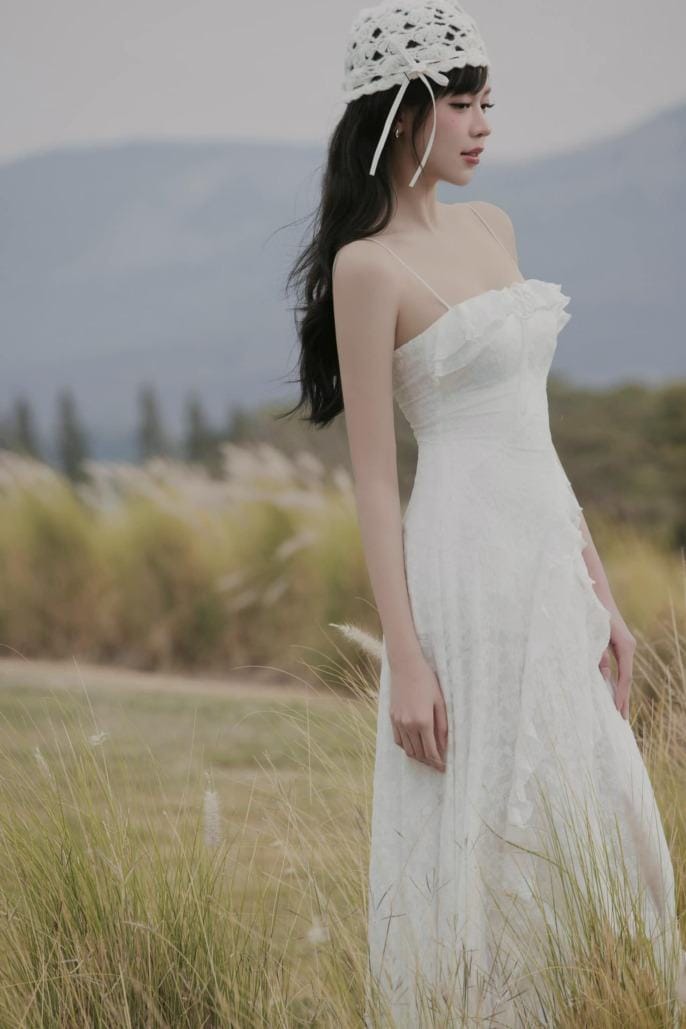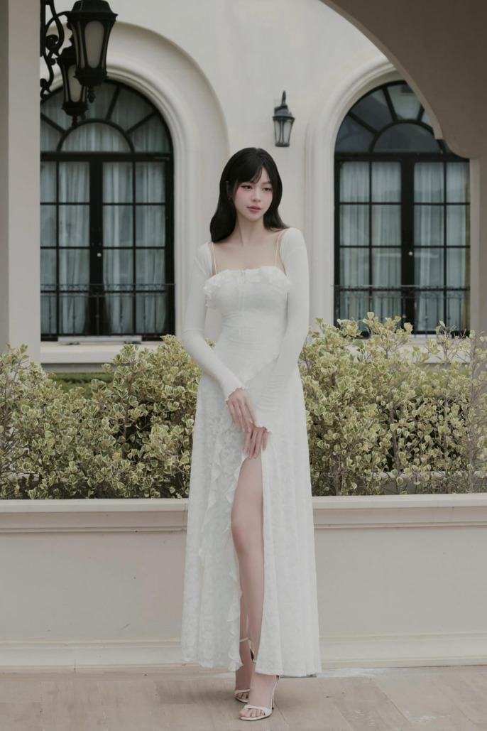 Trong bộ ảnh mới nhất, Thanh Thủy xuất hiện với loạt váy mang phong cách dịu dàng, bay bổng. Những chi tiết bèo nhún, xếp lớp được tận dụng tối đa, tạo nên vẻ ngoài vừa nữ tính vừa quyến rũ. Đặc biệt, chiếc váy cổ yếm với điểm nhấn bèo nhún khiến cô trở nên nổi bật, thu hút mọi ánh nhìn.