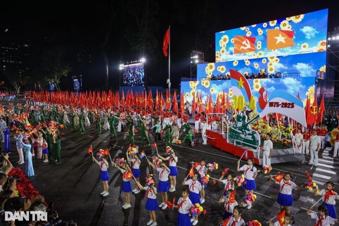 Tối 25/4, buổi sơ duyệt cấp Nhà nước đã diễn ra trong không khí trang nghiêm nhưng không kém phần hào hứng. Hàng nghìn người dân và các lực lượng quân đội, công an cùng tham gia, nhưng khối văn nghệ sĩ với sự góp mặt của các hoa hậu và nghệ sĩ nổi tiếng đã thu hút sự chú ý đặc biệt.