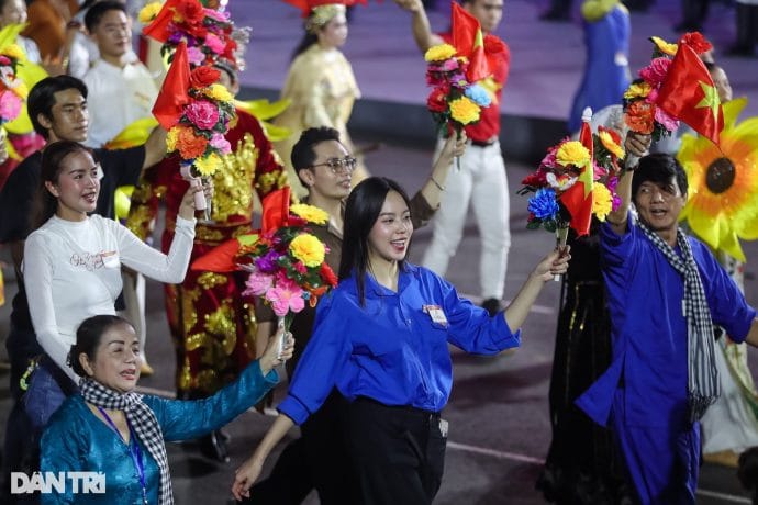 Hoa hậu Tiểu Vy cũng không kém phần hào hứng khi tham gia diễu hành. Cô chia sẻ: “Cảm giác được đi giữa biển người, hòa vào không khí lịch sử thật khó tả. Tôi sẽ nhớ mãi khoảnh khắc này”.