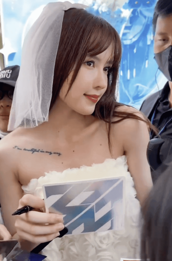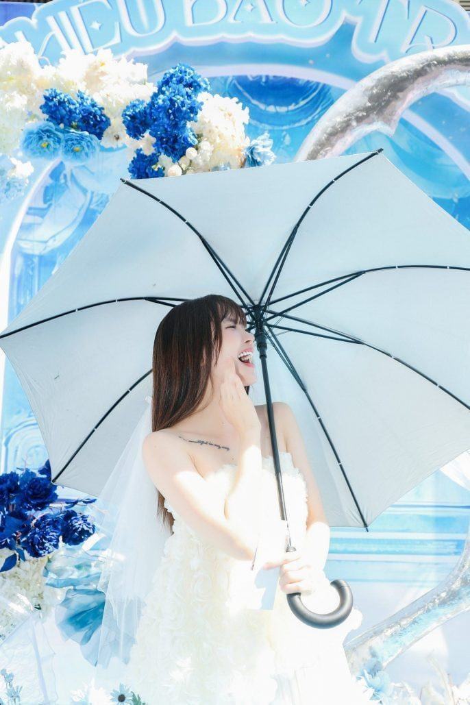 Bất ngờ thay, một khán giả đã đưa cho cô chiếc khăn voan đội đầu của cô dâu. Thiều Bảo Trâm cười ngượng ngùng nhưng vẫn chiều lòng fan, đội lên đầu một cách duyên dáng. Chưa dừng lại ở đó, khán giả còn “tấn công” tiếp bằng một tờ giấy hệt như giấy đăng ký kết hôn, yêu cầu cô ký tên. Khoảnh khắc này khiến nữ ca sĩ giật mình, bật cười nhưng vẫn vui vẻ ký tặng.