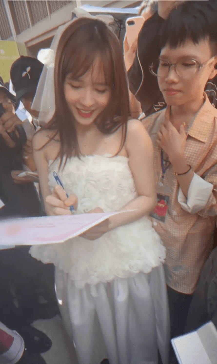 Concert “Chị đẹp” tại TP.HCM không chỉ là một đêm nhạc đầy cảm xúc mà còn ghi dấu ấn với khoảnh khắc dễ thương của Thiều Bảo Trâm. Từ sớm, nữ ca sĩ đã có mặt để giao lưu với người hâm mộ, ký tặng và chụp ảnh lưu niệm. Trong bộ váy trắng tinh khôi, Thiều Bảo Trâm khiến khán giả “đổ gục” bởi vẻ ngoài xinh đẹp và thần thái rạng rỡ.