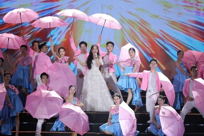 Chương trình còn ghi dấu ấn với phần nhạc kịch Dòng chảy khát vọng, đưa khán giả đi qua các giai đoạn lịch sử từ thời bao cấp đến hiện đại. Sự kết hợp giữa dàn diễn viên chuyên nghiệp và các em thiếu nhi, cùng âm thanh đa dạng từ trống nghi thức đến nhạc hiện đại, đã tạo nên một không gian nghệ thuật độc đáo.