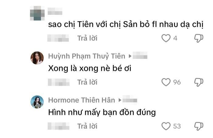 Động thái này của Thủy Tiên khiến nhiều người liên tưởng đến siêu mẫu Anh Thư, người từng tuyên bố cắt đứt quan hệ với học trò sau The Face Vietnam 2023. Tuy nhiên, khác với Anh Thư, Thủy Tiên luôn duy trì mối quan hệ thân thiết với các học trò khác, chỉ riêng Tường San là ngoại lệ.