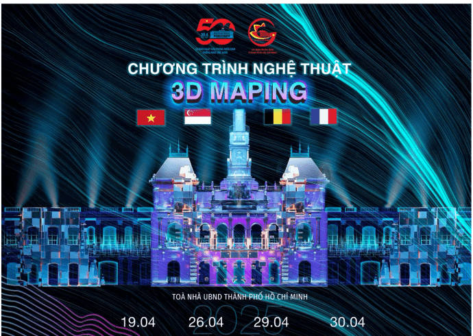 Trong khuôn khổ chuỗi hoạt động Sắc màu Thành phố Bác, chào mừng 50 năm Ngày Giải phóng miền Nam, thống nhất đất nước (30/4/1975-30/4/2025), TPHCM sẽ tổ chức chương trình nghệ thuật 3D mapping quốc tế đầy ấn tượng. Các đội nghệ thuật hàng đầu từ châu Âu, châu Á đến Trung Đông sẽ cùng nhau tạo nên một không gian giao thoa giữa nghệ thuật thị giác 3D mapping, âm nhạc giao hưởng hiện đại và giai điệu dân gian đương đại.