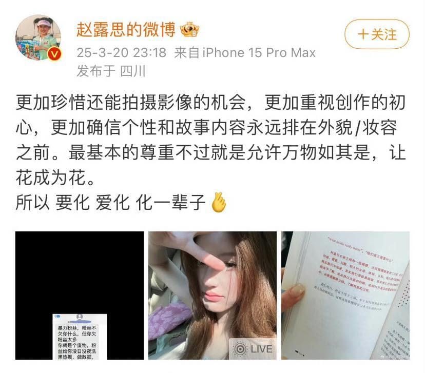 Triệu Lộ Tư bất ngờ đăng tải một loạt tin nhắn chứa đầy lời lẽ thô tục và mạt sát từ người hâm mộ lên Weibo. Những dòng chữ đầy ác ý khiến cô không khỏi tổn thương, nhưng cũng từ đó, cô đã có một phản ứng đầy mạnh mẽ và sâu sắc.