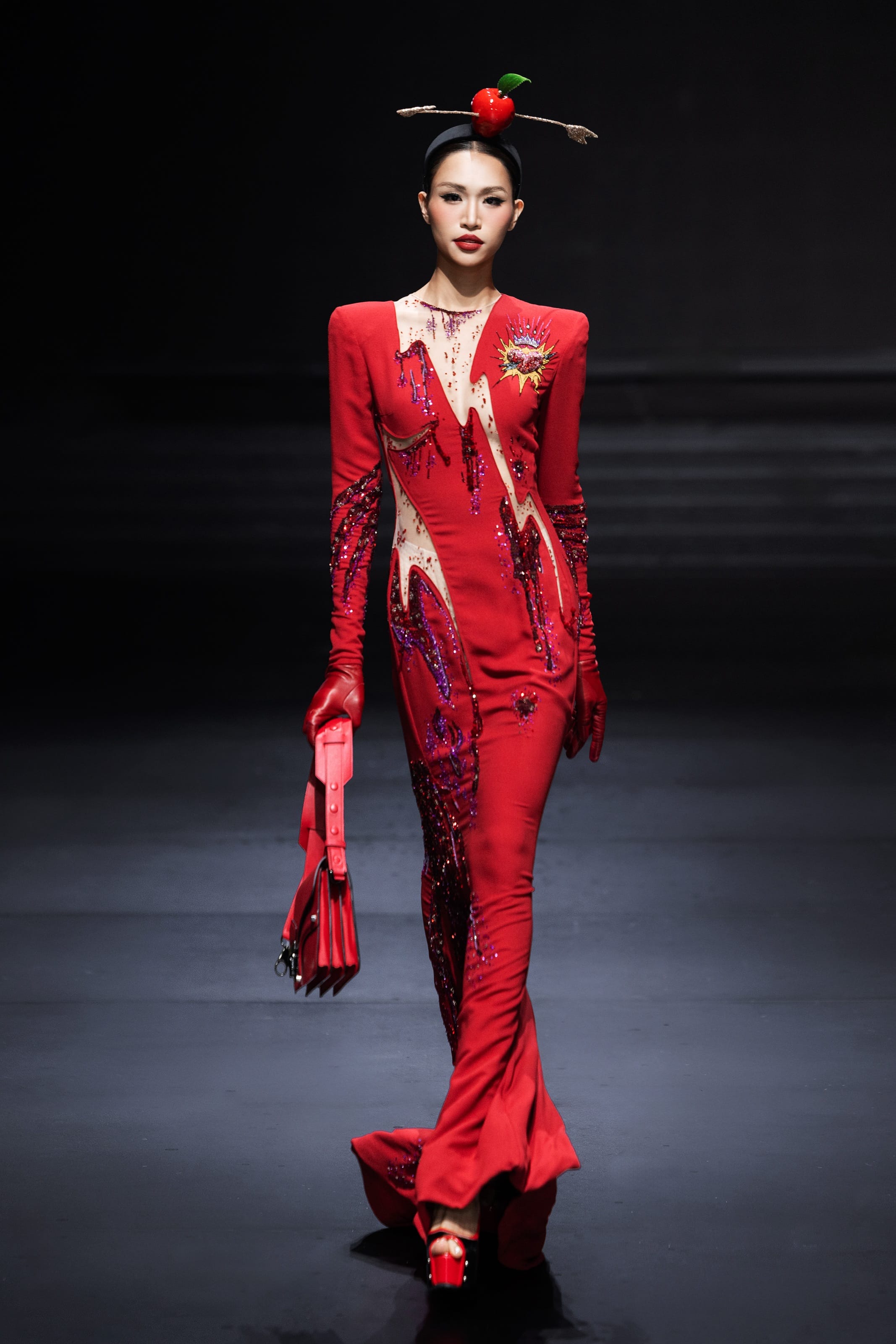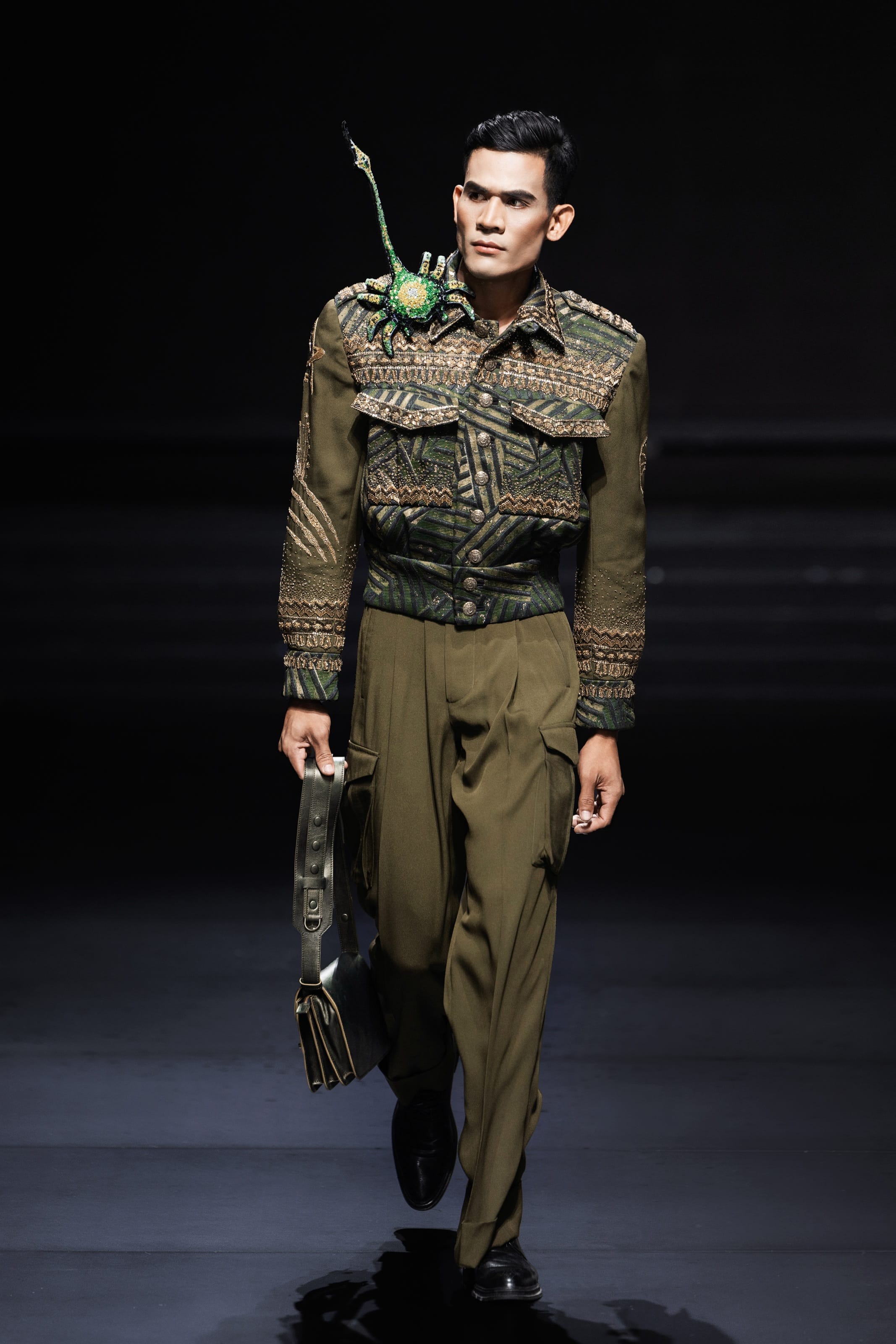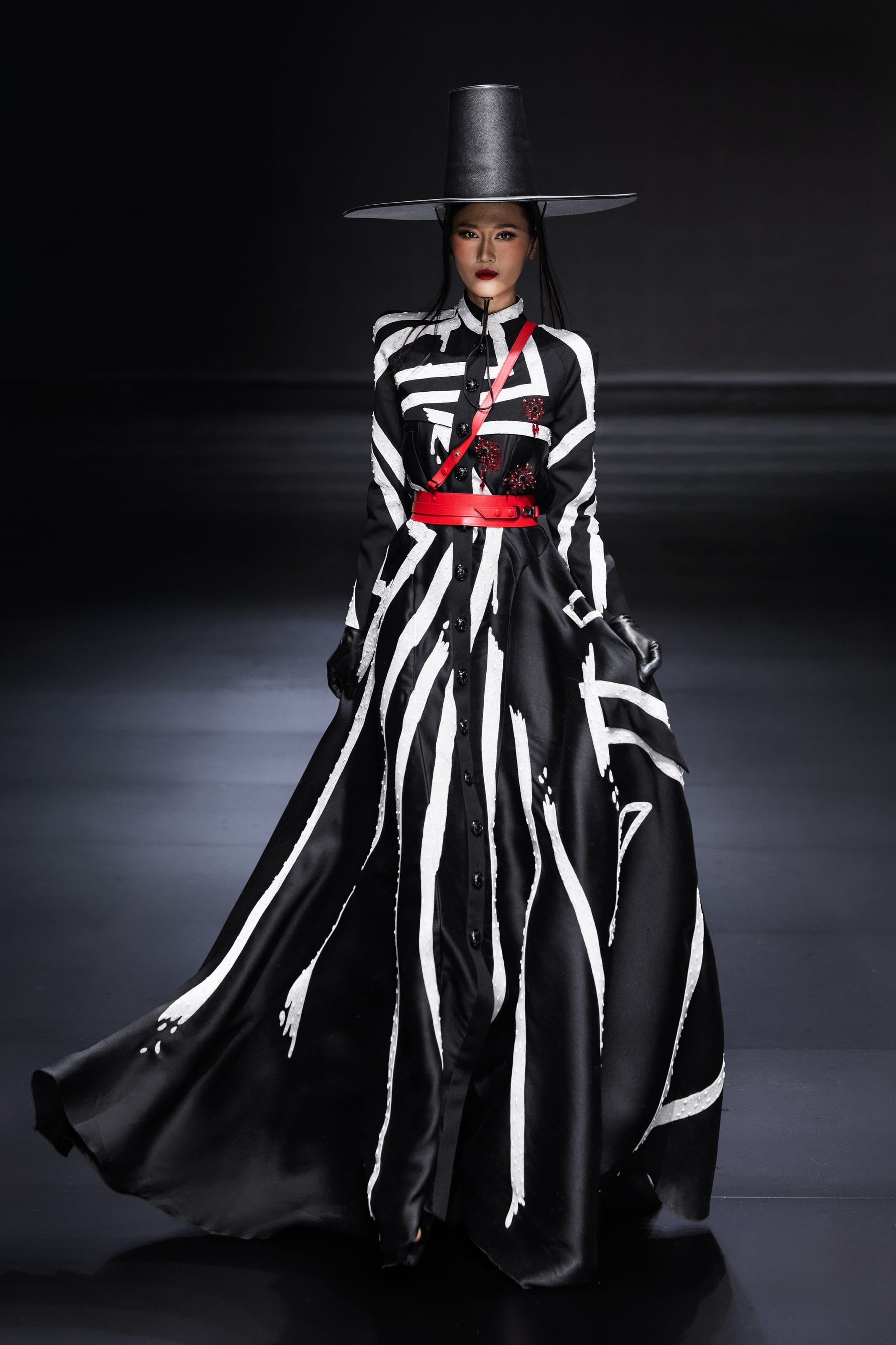 Tú Anh tỏa sáng trong bộ trang phục phức tạp nhất của bộ sưu tập, với thần thái sắc sảo và kỹ năng trình diễn chuyên nghiệp. Khoảnh khắc cô sải bước khiến khán phòng như nín thở, khẳng định vị thế của một người mẫu quốc tế.