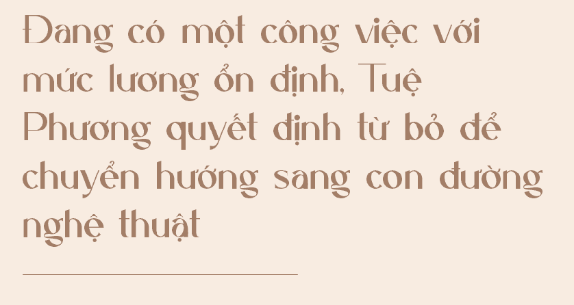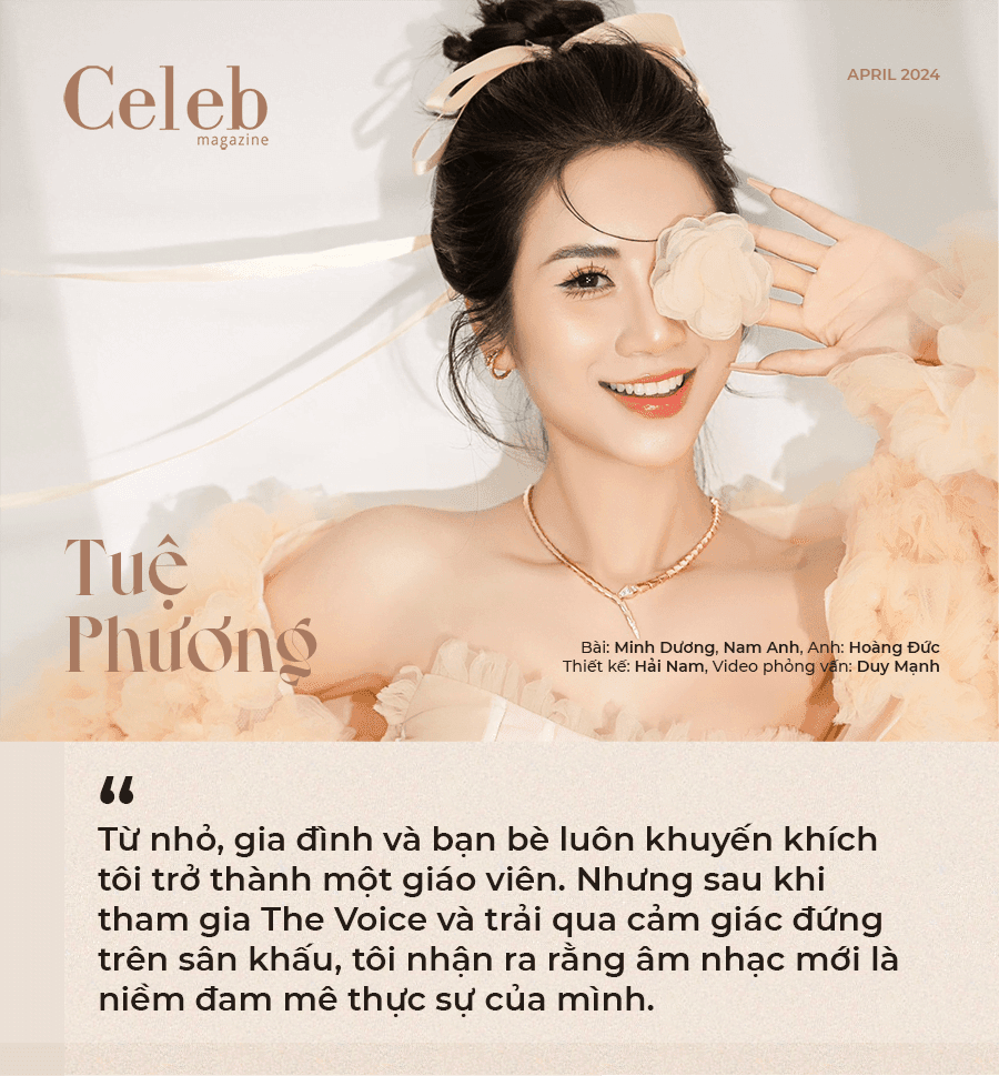 Trong thị trường âm nhạc sôi động và nhiều màu sắc, ca sĩ Tuệ Phương không những nổi tiếng với giọng ca truyền cảm mà còn nổi bật với tính cách mạnh mẽ và quyết đoán theo đuổi con đường sự nghiệp của mình. Từ một cô giáo trẻ có triển vọng, Tuệ Phương đã từ bỏ việc làm ổn định để theo đuổi ước mơ âm nhạc của mình. Chúng tôi đã có buổi trò chuyện riêng với Tuệ Phương nhằm chia sẻ thêm về câu chuyện sự nghiệp cùng dự định tương lai của cô.