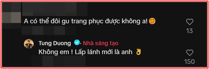 Thế nhưng, bên cạnh những lời tán dương, một khán giả đã thẳng thắn góp ý: “Anh có thể đổi gu trang phục được không ạ?”. Câu hỏi tưởng chừng nhẹ nhàng nhưng đã nhận về phản hồi đầy cá tính từ Tùng Dương: “Không em! Lấp lánh mới là anh”.