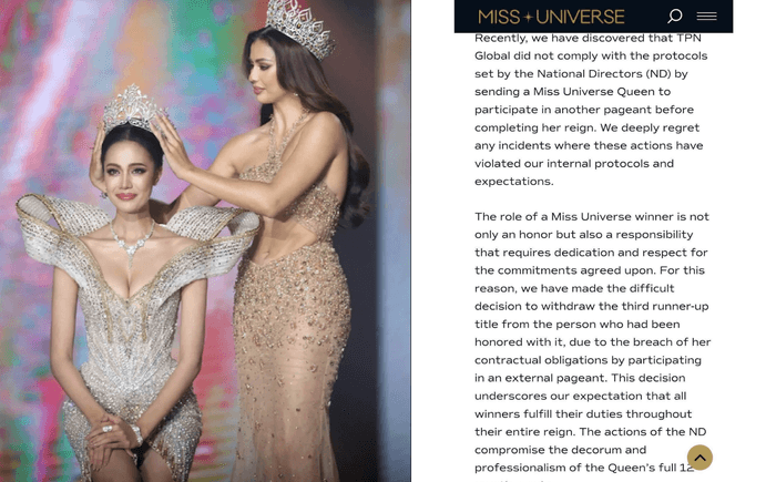 Quyết định này được đưa ra sau cuộc điều tra kéo dài của Sở Giao dịch Chứng khoán Thái Lan về các hoạt động của JKN, tập đoàn đứng sau cuộc thi Hoa hậu Hoàn vũ danh giá. JKN bị cáo buộc đã đưa ra thông tin không trung thực liên quan đến việc chuyển nhượng 50% cổ phần của JKN Legacy, Inc. cho Legacy Holding Group USA Inc., một công ty có liên quan đến doanh nhân người Mexico Raul Rocha.