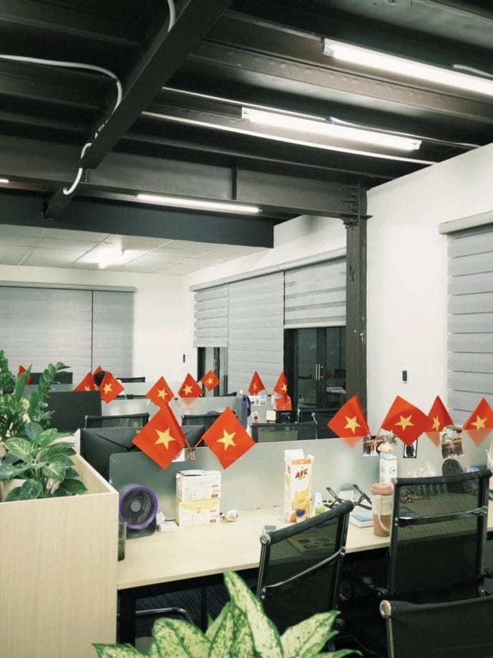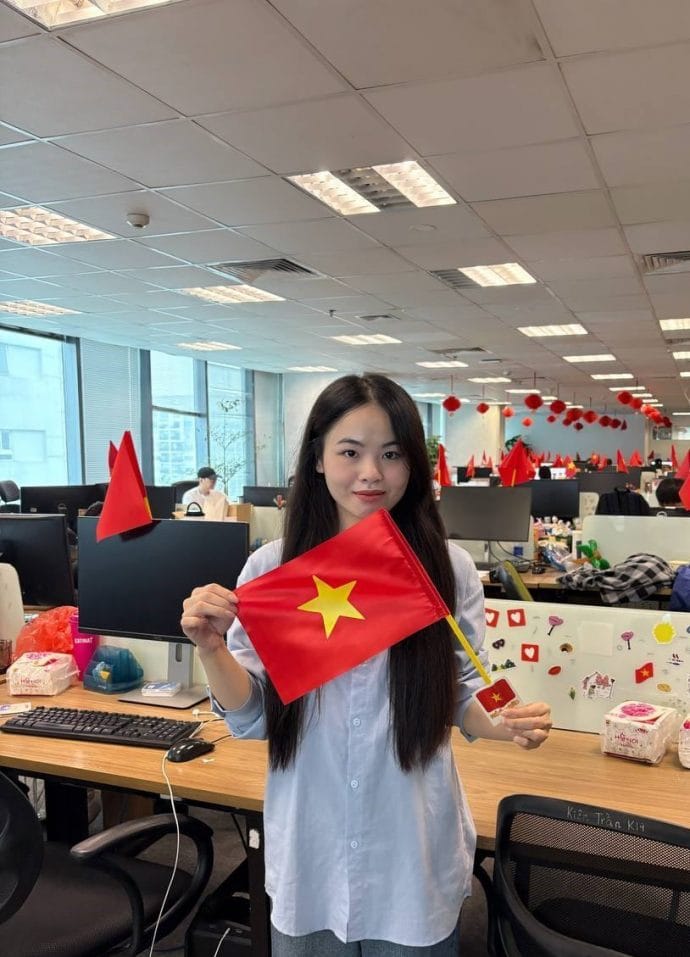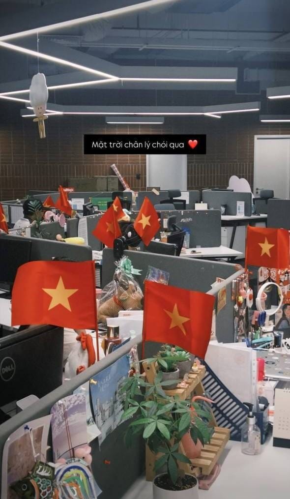 “Sáng thứ 2 lòng bỗng vui hơn Tết vì thấy văn phòng toàn cờ đẹp quá” – một bạn trẻ chia sẻ. Không chỉ là hình ảnh đẹp mắt, việc treo cờ còn mang đến cảm giác tự hào và gắn kết. Thuỳ Linh (26 tuổi, Hà Nội) không giấu nổi xúc động khi bước vào văn phòng: “Tự nhiên thấy cờ bay phấp phới khắp công ty, tim mình cũng ‘bay’ theo một chút.”