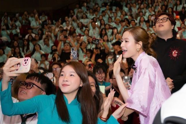 Hoàng Thùy Linh giao lưu với sinh viên tại Đại học Văn Lang.