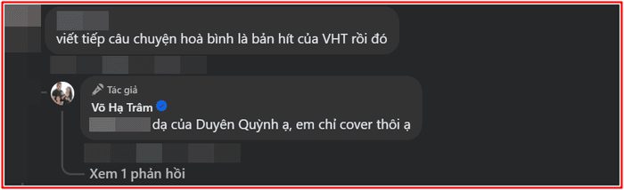 Thế nhưng, giữa những lời khen ngợi, Võ Hạ Trâm vẫn giữ vững sự khiêm tốn. Khi một khán giả bình luận rằng ca khúc là “hit của Võ Hạ Trâm”, cô đã nhẹ nhàng đính chính: “Dạ của Duyên Quỳnh ạ, em chỉ cover thôi ạ”. Câu trả lời ngắn gọn nhưng đầy tinh tế ấy không chỉ thể hiện sự chuyên nghiệp mà còn là lòng tôn trọng dành cho Nguyễn Duyên Quỳnh – người đã dành nhiều tâm huyết để thể hiện ca khúc này trước đó.