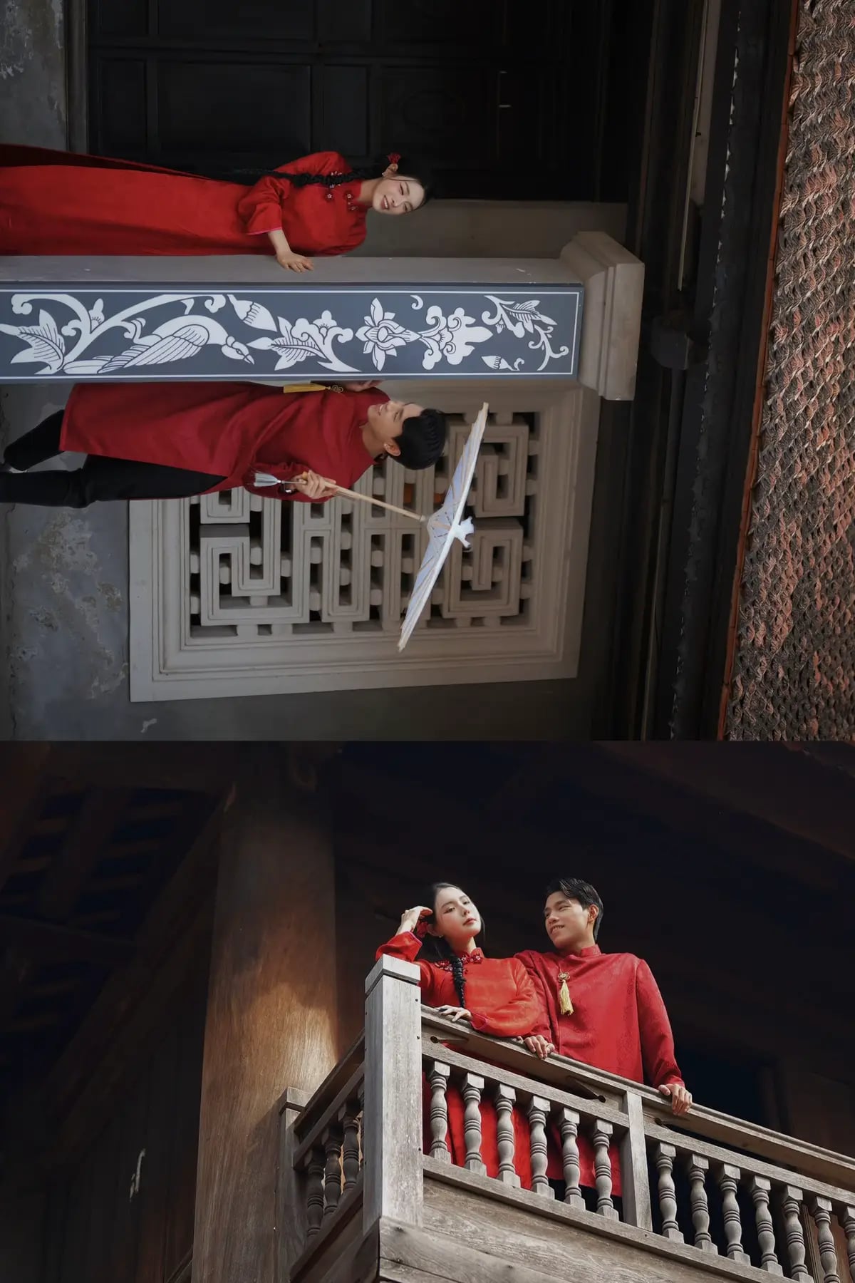 Bộ ảnh áo dài mới đây với chiếc áo đỏ rực rỡ và hoa lay ơn như một lời khẳng định: cặp đôi này đã sẵn sàng bước vào một cái kết viên mãn, và có lẽ, chỉ còn đếm ngược đến ngày trọng đại.