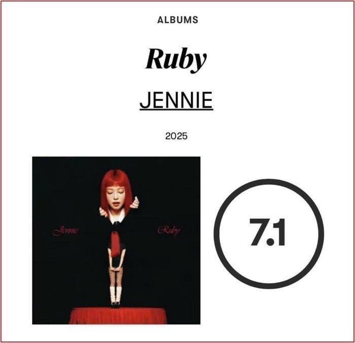 Trong khi drama bùng nổ, album RUBY của Jennie vẫn liên tục gặt hái thành tích ấn tượng. Pitchfork chấm 7.1 điểm, đưa cô trở thành thành viên BLACKPINK có album solo được đánh giá cao nhất. Ngoài ra, RUBY còn nhận được lời khen từ NME, CLASH MAGAZINE, và Rolling Stone, khẳng định đẳng cấp của Jennie trên trường quốc tế.