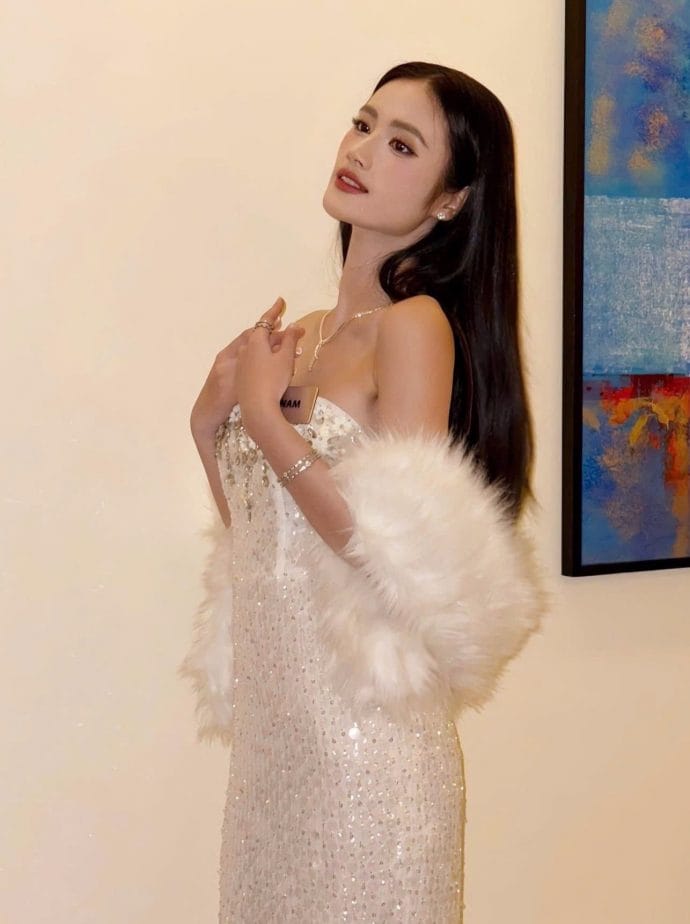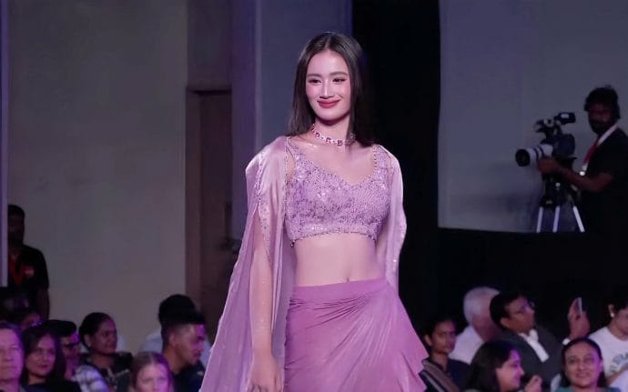 Trong trang phục truyền thống Ấn Độ, Ý Nhi khoe vóc dáng thanh thoát cùng làn da trắng ngần. Cô tự tin sải bước, để lại ấn tượng mạnh với ban giám khảo và khán giả. Tiếp đó, người đẹp chinh phục sân khấu với chiếc váy hồng lấy cảm hứng từ hoa sen, khoe đôi chân dài miên man.